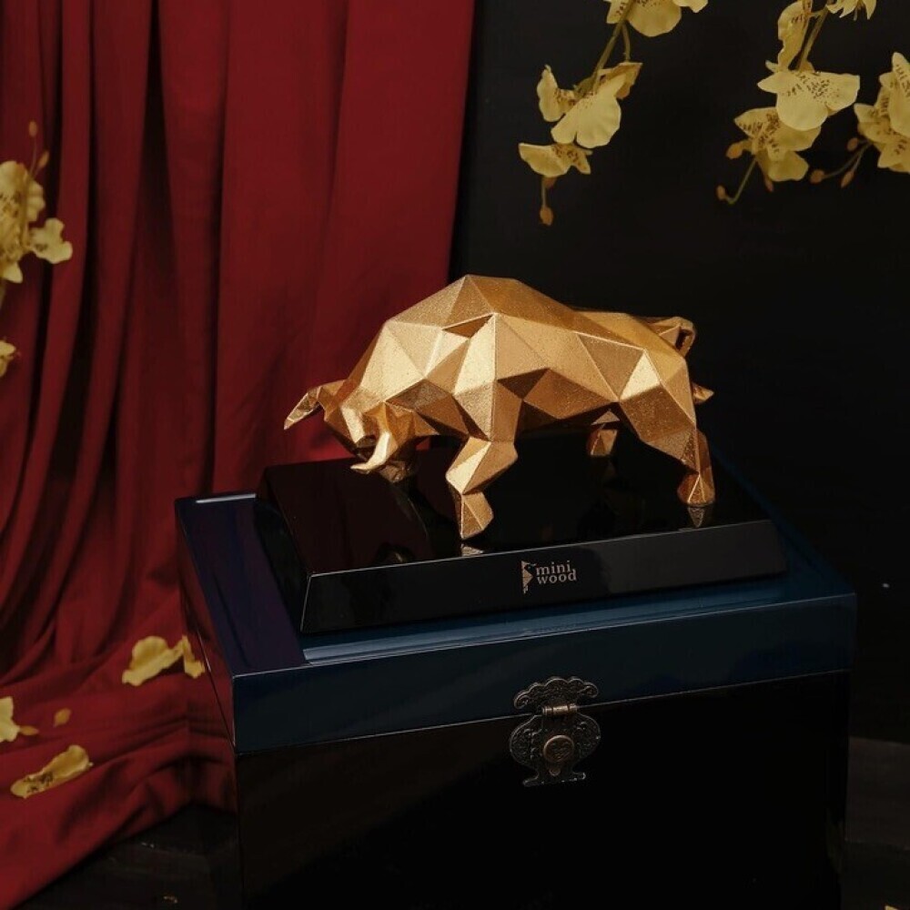 - Full set: Gold-plated buffalo statue + box